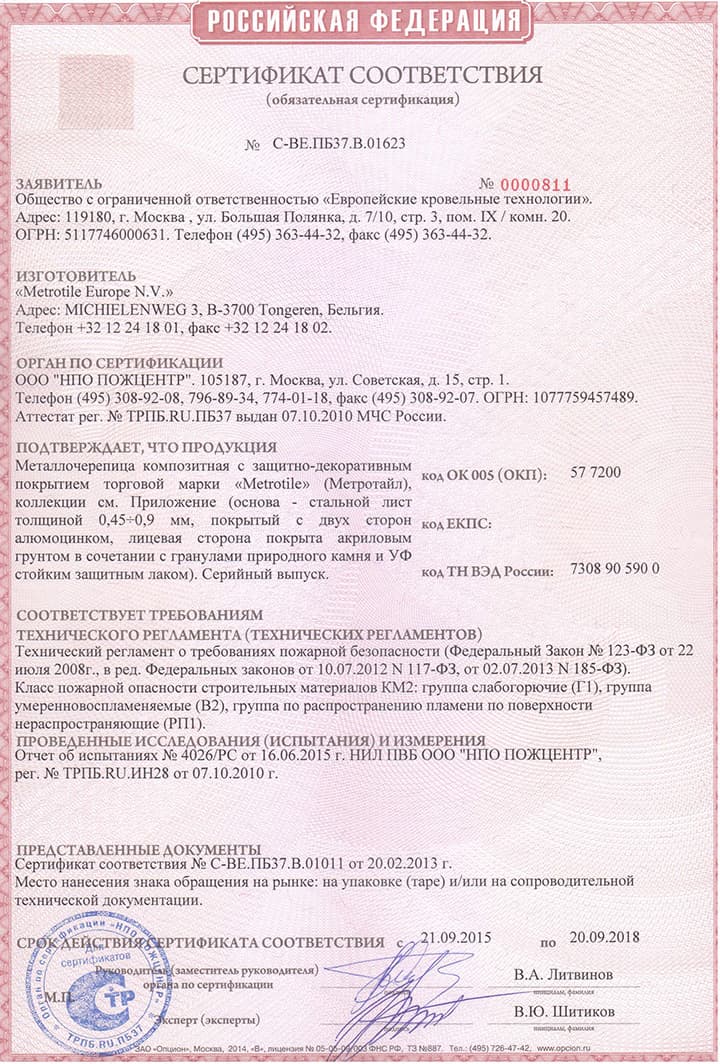 Сертификаты продукции