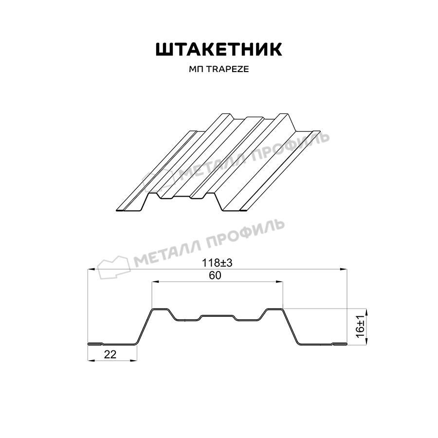 Штакетник Металл Профиль TRAPEZE-O 0,5 VALORI Grey