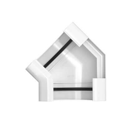 Угол желоба ТЕХНОНИКОЛЬ ПВХ МАКСИ снежно-белый – связующий элемент в водостоке. Используется, чтобы соединять желоба и корректировать направление потока воды.